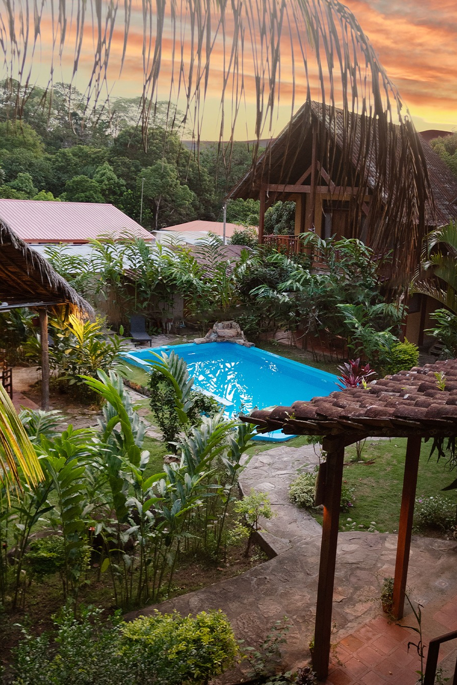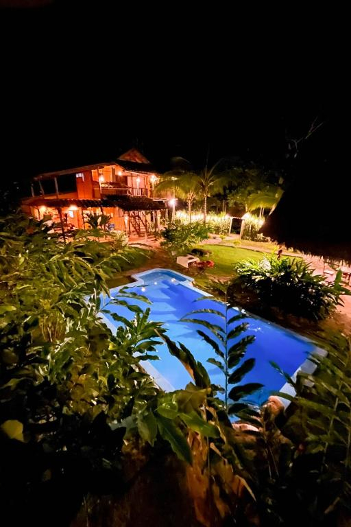 Se encuentra ubicado en el valle del río Cumbaza, frente a las montañas de Cordillera Escalera, en el distrito de San Antonio a 25 min de la ciudad de Tarapoto. Contamos con 9 habotaciones tipo Bungalow inspiradas en su entorno natural. El lodge cuenta con Piscina, restaurante con Horno a Leña, Bar, sala de audiovisuales y la infraestructura necesaria para pasar días de mucha tranquilidad en un pueblo amazónico con todas las comodidades.